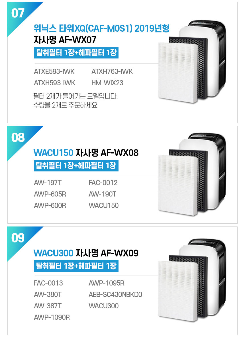 WX02 H13등급 헤파 탈취필터 공기청정기호환 국내산필터