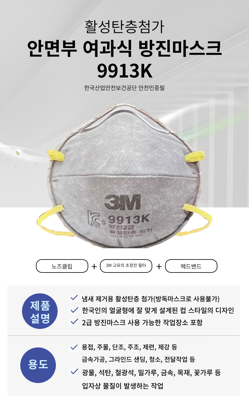 2급방진마스크 9913K 활성탄층첨가 안면부여과식 20개